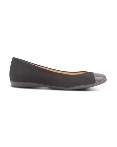 A timeless classic with a modern touch, the Leora Cap-Toe Ballet Flat is designed for effortless elegance and all-day comfort. Crafted from luxurious suede with a chic patent leather cap toe, this versatile flat is perfect for any occasion, from office meetings to weekend strolls. Featuring a cushioned insole and a flexible sole, Leora ensures comfort with every step.