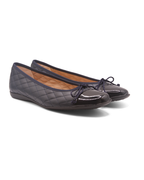 Our most comfortable Spanish ballet flat. Passport has luxurious quilted leather features, a patent leather cap toe, and an adjustable drawstring bow. This ballet flat is the epitome of class and sophistication.