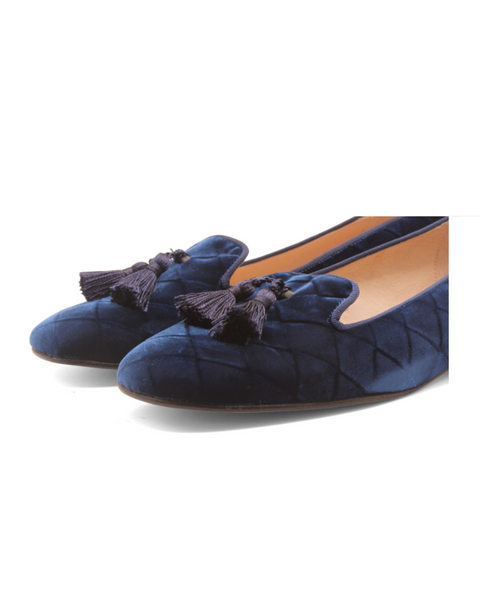 Eloise Blue Quilt Velvet – French Sole